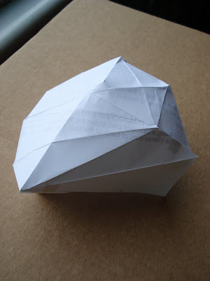I cut away the excess paper like I had done before and set about perfecting it but trying to keep it simple.Here I've drawn triangles over the surface of the mock up.